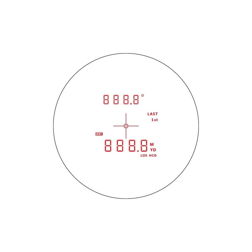 Pětinásobné zvětšení, objektiv 21 mm, červený TOLED displej. Displej je čitelný i ve zhoršeném světle, což je detail, který na papíře nevypadá důležitě, ale navečer v lese nebo za zatažené oblohy je to přesně ten rozdíl mezi pohodlným odečtem a dohledáváním čísla na displeji.