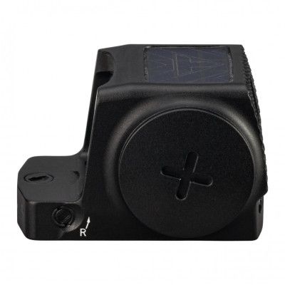 Solární panel (Solar Power Backup): Horní solární článek automaticky napájí kolimátor při dostatečném okolním světle. To drasticky prodlužuje životnost baterie CR2032 a zajišťuje, že kolimátor bude fungovat i v případě jejího vybití.