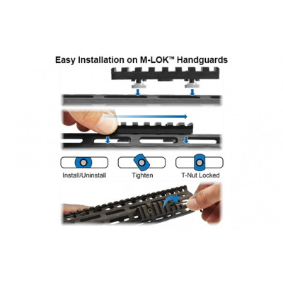 Montáž sekceje velmi jednoduchá a zvládnete ji sami během pár sekund. Sada obsahuje ocelový šroub, matici M-LOK a imbusový klíč.