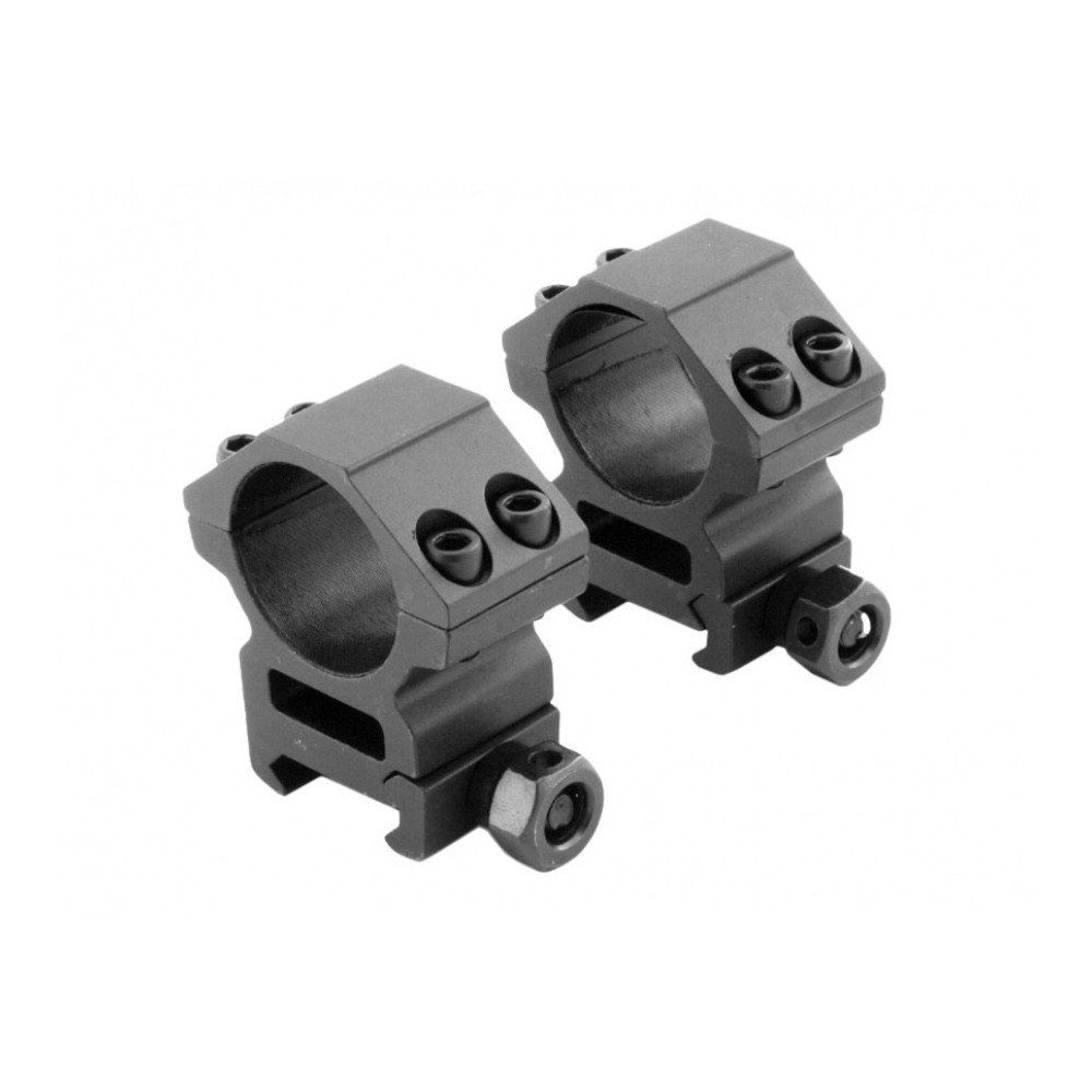 Dvoudílná konstrukce s čtyřmi šrouby pro každou obejmu a jedním šroubem pro základnu zajišťuje pevné a stabilní uchycení na šíny 22 mm, typické pro Weaver i Picatinny systémy. Součástí sady jsou dva montážní kroužky, imbusový klíč a náhradní šroubky.