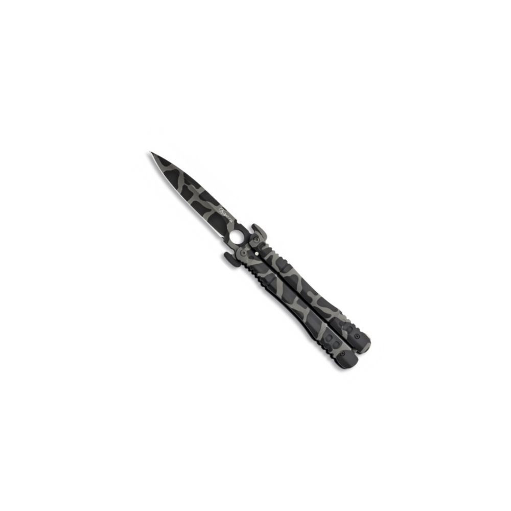 Zavírací nůž typu motýlek španělské značky Albainox. Čepel s hladkým ostřím je vyrobena z nerezové oceli s maskovaným 3D foto potiskem. Stejný maskovací vzor je i na hliníkové rukojeti s fixační západkou na konci.