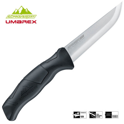 Alpina Sport Ancho BLACK je nůž s pevnou čepelí a hladkým ostřím. Univerzální čepel je vyrobená z oceli 420.