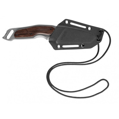 Nůž je dodáván včetně kydexového pouzdra s možností zavěšení na krk.