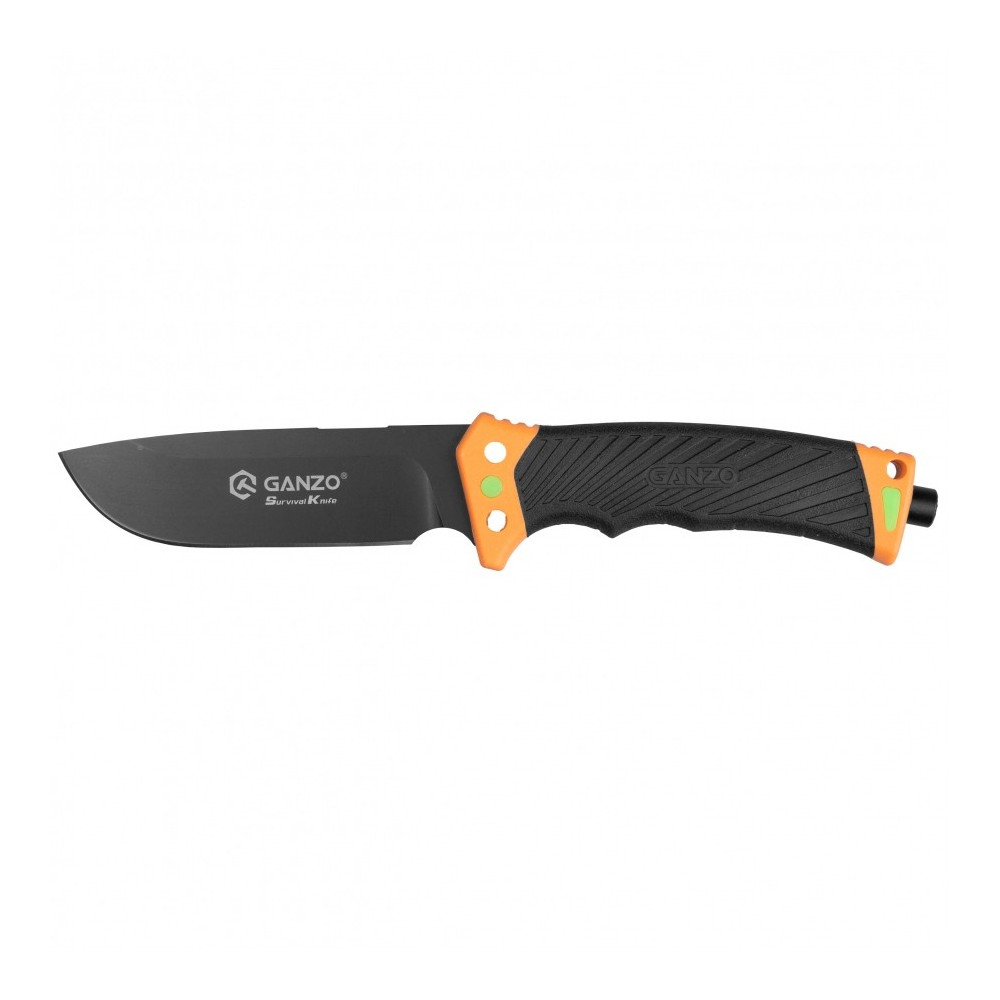 GANZO G8012V2 má konstrukci full tang (tzv. full spindle). Tento termín se používá k popisu nožů, jejichž čepel a hrot jsou vyrobeny z jednoho kusu oceli. Nože této konstrukce jsou extrémně odolné proti poškození, proto je hojně využívají milovníci přežití, bushcraftu, vojáci či lovci. Nůž má širokou a masivní čepel o délce 113 mm, vyrobenou z nerezové oceli 8CR13 57-58 HRC, která je perfektní volbou pro outdoorový nůž. Použitá ocel je odolná vůči korozi a opotřebení, zůstává dlouho ostrá a snadno se brousí, což je v případě survival nože velmi důležité. Tvrdá ocel v kombinaci s 5 mm silnou čepelí full tang dává jasně najevo, že nůž je určen pro venkovní použití a lze jej použít na sekání a odlamování. Hřbet nože má plochý řezák s ostrými hranami, který perfektně pracuje s křesadlem.