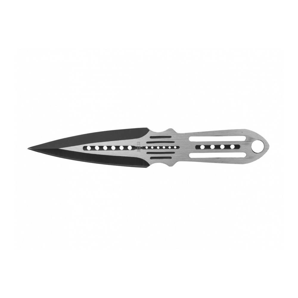 Vrhací nůž Joker je kvalitní šipka od známé španělské značky. Výrobek je vyroben z nerezové oceli odolné proti poškození, celek je dokonale vyvážený. Díky své jednodílné ocelové konstrukci je tento model prakticky nezničitelný. Rukojeť má několik zářezů pro snížení hmotnosti a zlepšení vyvážení nože. Malý výstupek imitující kříž chrání před klouzáním prstů po čepeli. Sada obsahuje pouzdro na opasek, usnadňující přenášení a výběr nože.