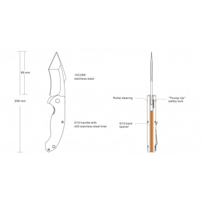 Čepel lze rozložit jednou rukou pomocí pinballu, což usnadňuje pohodlné ovládání pravákům i levákům. Na ose čepele jsou kuličková ložiska zajišťující hladký a dynamický chod. Nůž má dva zámky, standardní liner-lock a přídavný dorazový mechanismus ThumbUp, který funguje jako pojistka hlavního zámku.