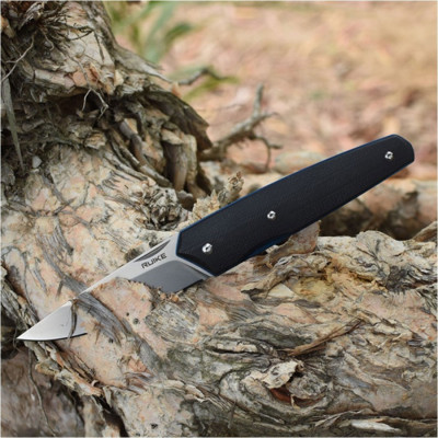 Nůž otevíráme pomocí zářezu na nehet. Bezpečnost používání zajišťuje spolehlivý a osvědčený Liner Lock. Střenky nože Ruike P848-B jsou vyrobeny z texturovaného kompozitu s názvem G10, díky kterému nůž udržíte bezpečně i ve vlhké ruce.