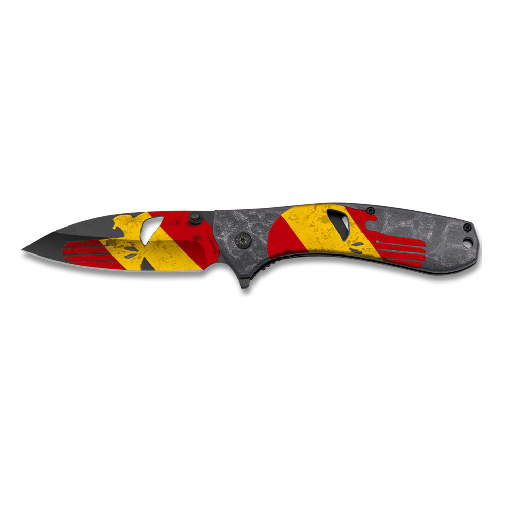 Zavírací nůž 3D SKULL od předního výrobce ALBAINOX je vynikající volbou pro každého, kdo hledá kvalitní a stylový kapesní nůž. S čepelí o délce 9 cm vyrobenou z odolné oceli 3Cr13MoV, tento nůž nabízí jak dlouhodobou ostrost, tak i vysokou odolnost. Čepel má standardní tvar s vrty pro snížení hmotnosti a zlepšení rovnováhy.