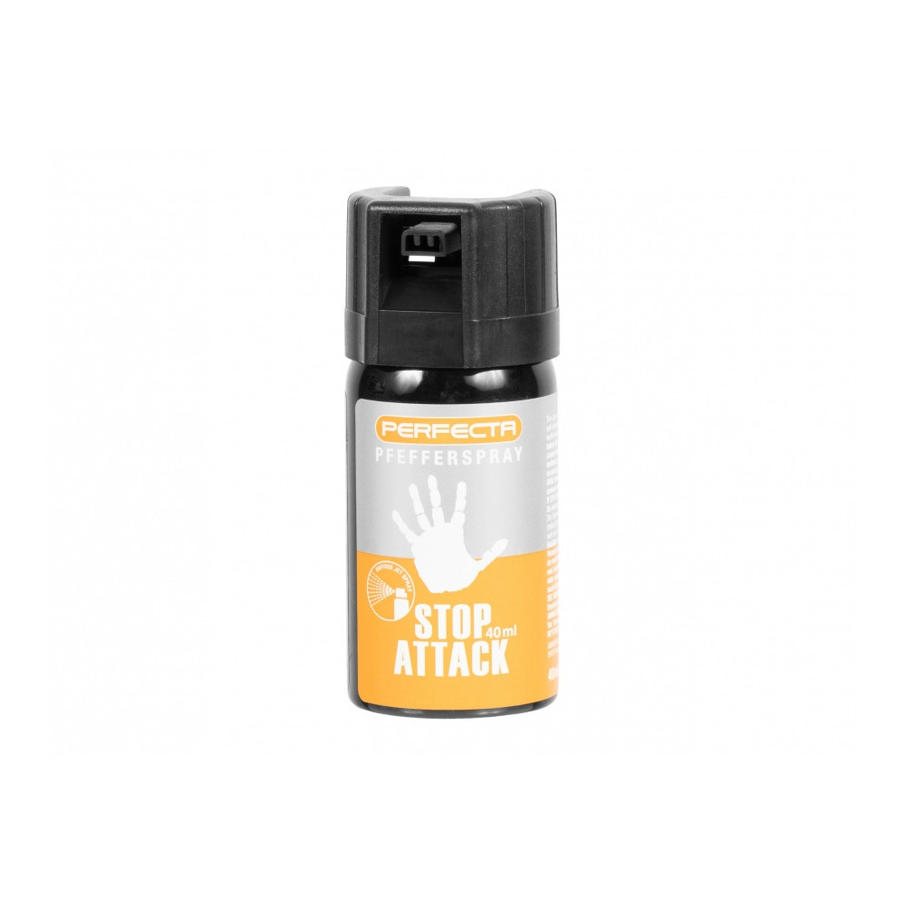 Perfecta Stop Attack kužel 40 ml je účinný pepřový sprej s dosahem 4 metry, který ve formě širokého mraku uvolňuje účinnou látku s 10% koncentrací kapsaicinu. Pepřový sprej Perfecta Stop Attack je snadno přenosný, s objemem 40 ml se lehce vejde do kapsy nebo dámské kabelky, což jej činí ideálním pro každodenní nošení.