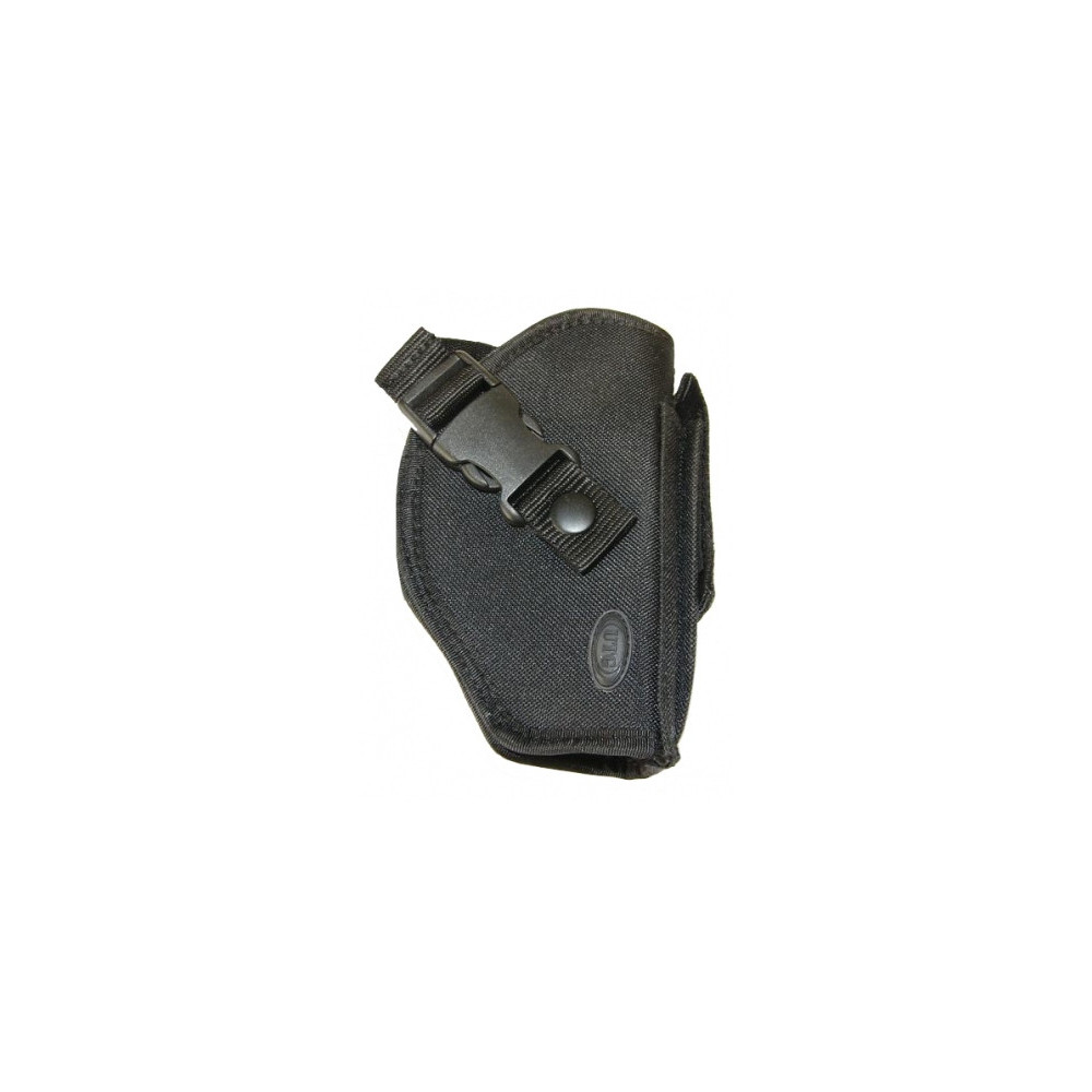 Univerzální pouzdro Deluxe Commando značky Leapers s moderním vzhledem, vhodné pro středně velké pistole jako Glock 17 nebo IWI Jericho. Lze jej také úspěšně použít s menšími jednotkami zbraní, jako jsou Beretta M84, Walther P99 a Makarov. Vyrobeno z třívrstvého materiálu (Codura vně, PVC pěna uvnitř, měkká tkanina uvnitř pro maximální ochranu zbraně). Moderní design, prostor pro zásobník, otevírání dvěma způsoby (stažením řemínku háčkem nebo rozepnutím polymerové přezky). Možnost připevnění suchým zipem na taktickou vestu nebo opasek. Pouzdro používá policie ve Spojených státech.
