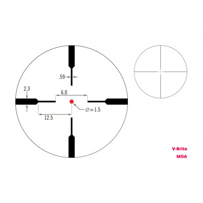 V-Brite záměrná osnova (SFP): Podsvícený červený bod s nastavitelnou intenzitou. V druhé fokální rovině zůstává stále stejně malý, takže ti nezakryje cíl.