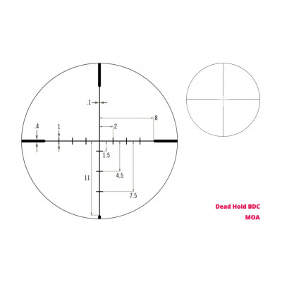 Dead-Hold BDC záměrný kříž (SFP): Balistická osnova, která ti pomůže s odhadem propadu střely a vlivu větru. Kříž zůstává stále stejně velký, takže ti při míření nepřekáží.