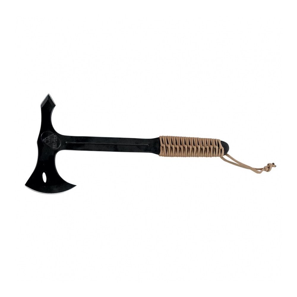 Ergonomická rukojeť je robustně připevněná pomocí ocelových šroubů, což zajišťuje její pevnost i při intenzivním používání. Ocelový trn na konci rukojeti slouží nejen jako nouzový rozbíječ skla, ale také zvyšuje celkovou všestrannost tomahawku.