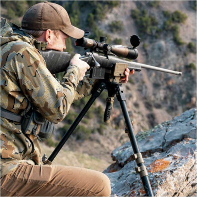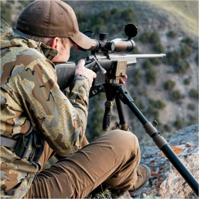 Stativ Primos Trigger Stick Apex se vyznačuje mimořádnou odolností a omezenou hmotností vlastní konstrukce. To bylo dosaženo díky kombinaci hliníkové kostry a vláknové kompozitové osnovy. Díky třídílné konstrukci nohou má stativ velmi široký rozsah nastavení výšky od 93 do 157 cm - což umožňuje pohodlnou střelbu z jak stojící, tak sedící pozice. V tomto druhém případě se hodí možnost zvýšení úhlu nohou, což nám umožní výrazné snížení výšky. Lze také upravit rozestavení vidlice, což nám umožní plynulé použití jak s úzkými loveckými puškami, tak s precizními puškami s širokými základnami.
