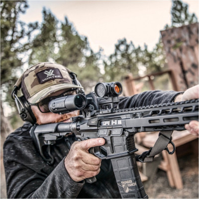 Vortex dokázal neuvěřitelnou věc – nacpal 6x zvětšení do těla, které je menší než většina konkurenčních „tříkrát“ modulů. Micro 6x je navržen pro střelce, kteří nechtějí dělat kompromisy mezi manévrovatelností a schopností trefit cíl na dálku. Montáž je jednoduchá, intuitivní a hlavně pevná. Jakmile ho zaklapneš do osy, máš před sebou jasný a ostrý obraz bez barevných vad. A když ho nepotřebuješ, prostě ho odklopíš stranou.